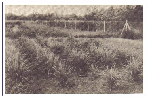 Continuó exponiendo, ya con referencia a la labor particular del equipo de Mejoramiento de Plantas Aromáticas del C.N.I.A., sobre la red de ensayos que se lleva a cabo en todo el país y dentro de sus probables zonas de adaptación, de las especies vetiver, lemon grass y dos tipos distintos de geranios. Detalló así el número de ensayos de cada uno y los lugares de ubicación, dando un panorama general de los objetivos cumplidos y los análisis de los respectivos constituyentes que se están realizando en laboratorios químicos privados (Homps y Cía.) y los que se harán en el C.N.I.A. por el propio equipo, en el alambique moderno que se está montando en Castelar, en dependencias del Instituto de Botánica Agrícola.