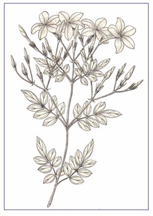 Con el nombre de "jazmín" se conoce una serie de plantas pertenecientes a diversas familias botánicas, cuyas flores recuerdan por su forma, color o aroma a los auténticos jazmines. Los verdaderos jazmines, considerados desde el punto de vis ta botánico, pertenecen al género Jasminum, de la familia de las Oleáceas, caracterizada principalmente por tener su androceo representado por dos estambres insertados en el tubo de la corola. El género Jasminum comprende unas 350 especies originarias en su mayoría de las regiones templadas, subtropicales y tropicales de Eurasia y Oceanía extendiéndose en una franja geográfica que va desde las Islas Azores y Canarias, en el Atlántico, región de la cuenca del Mediterráneo, África, Asia Menor, Medio Oriente, este y sudeste de Asia, Malasia, hasta Australia y Polinesia, siendo algunos citados para América tropical. Los "jazmines" son arbustos apoyantes o trepadores, con flores blancas o amarillas, raramente rojas, agrupadas en vistosas inflorescencias. Teniendo en cuenta que en nuestro país se cultivan solamente dos especies con flores rojas muy poco conocidas, podemos dividir a los verdaderos jazmines en dos grupos, los de flores amarillas y los de flores blancas; este último posee las especies con flores de más delicada fragancia. El grupo de verdaderos "jazmines" con flores blancas es numeroso, recurriéndose para su clasificación a caracteres foliares. La especie utilizada en la industria perfumífera pertenece a la serie o sección que posee hojas opuestas y pinadas, es decir hojas con 5 o más hojuelas o folíolos y es dentro de este grupo la única que se cultiva en nuestro país y se la conoce con el nombre científico de Jasminum officinale Linneo. Debemos aclarar que no es la especie típica la que se cultiva para perfumera, sino una forma derivada de una variedad de J. officinale, caracterizada por sus flores de más de 2 cm de diámetro y su corola persistente que se marchita en la planta y cuyo nombre científico completo es J. officinale var. grandiflorum f. persistenflorum. Es originario del N. O. de India, oeste del Himalaya y S. de China y se le conoce en nuestro país con los nombres vulgares de "jazmín del país", "jazmín de España", "jazmín real" y "jazmín de Cataluña". |
