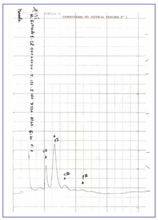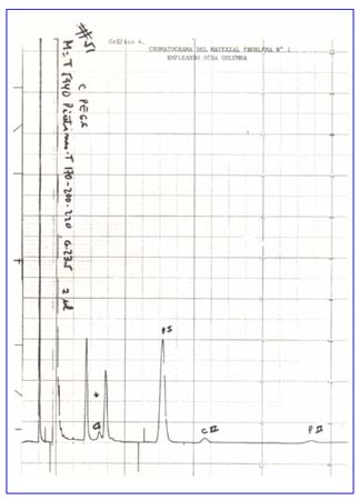 Gráfico 4: Cromatograma del material problema N° 1, empleando otra columna