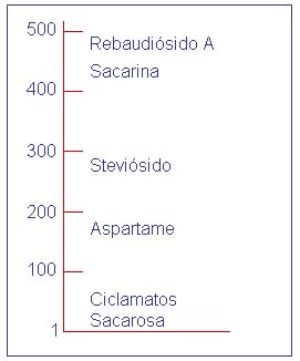 En el gráfico N° 1 se compara el poder edulcorante del steviósi-do y de otros sustitutos del azúcar en relación a la sacarosa.