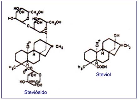 Otros glucósidos han sido aislados e identificados (12-14); se hallan en muy pequeña cantidad y su poder edulcorante relativo es menor que el del Steviósido.
