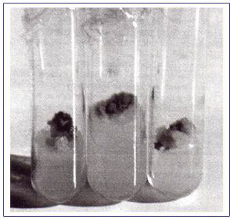 Se obtuvieron callos en un medio de cultivo conteniendo los macro y micronutrientes de Greesshoff & Doy completos, adicionados con 30 gr/l de sacarosa, 8gr/l de agar, vitaminas de Jacquiot, 3ppm de ANA y 1 ppm de BAP. Las condiciones ambientales de cultivo fueron 16 hs. de luz u oscuridad completa, a 21°C ± 1-2°C. Se utilizaron diferentes explantes provenientes de árboles adultos, semillas y plántulas.