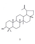 De la fracción conteniendo triterpenos se aislaron 24-metilencicloartanol (1), lupeol (2) y β-amirina (3), mientras que la fracción conteniendo fitosteroles rindió stigmasterol (4), campesterol (5) y sitosterol (6).