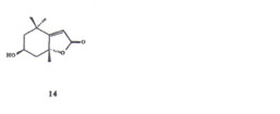 Finalmente se aislaron 8-ePI-xanthantin (13)10 y el sesquiterpeno degradado loliolide (14)11 que fueron identificados por comparación con los datos espectroscópicos reportados en la literatura.