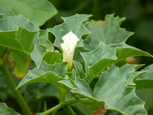 Hierba anual erguida, glabra, de 05,0 a 1,00 m de altura, con ramificaciones en forma dicotómica, glabra. Hojas pecioladas, alternas o subopuestas sinuado dentadas, anchamente ovadas, de 6-14 cm de largo por hasta 11 cm de ancho. Flores solitarias en las bifurcaciones de los tallos, de corola blanquecina, de 5-6 cm de largo. Fruto cápsula ovoide de 3-5 cm de largo, 4 valva, cubierta de espinas gruesas, pluriseminada. Semillas reniformes, rugosas, negruzcas. En Doña Dolores florece al final de la primavera y fructifica y se la encuentra formando machones. Las fotos fueron tomadas la anteúltima semana de diciembre de 2011.