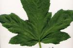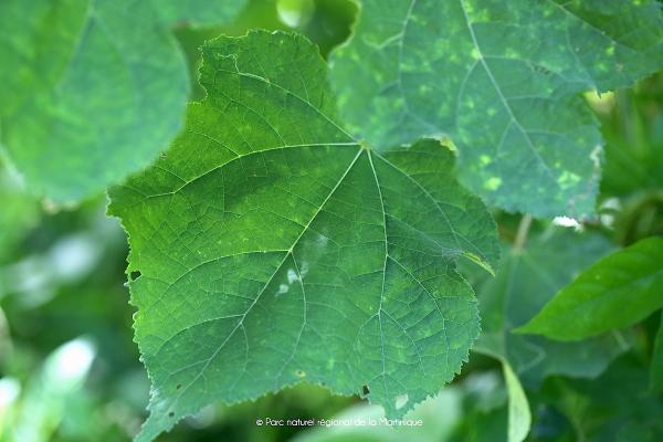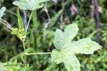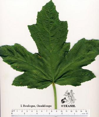 Hierba anual, erguida, leñosa en la base, de hasta 3 o 4 m, no ramificada. Hojas orbiculares, de 10-30 cm, 5-7 lobadas; lóbulos lanceolados a aovados aserrados, agudos u obtusos. Cáliz de 2 cm, pétalos amarillos con manchas purpúreas en el centro, de 3-4 cm. Fruto capsular anguloso de hasta 20 cm, acuminada, viscosa.