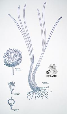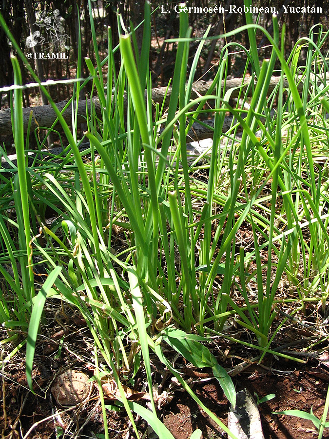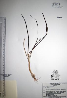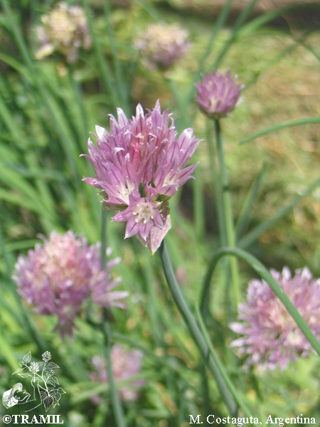 Planta herbácea, con tallo bulboso subterráneo, de hasta 1 cm de ancho, frecuentemente alargado. Hojas lineares, huecas, tan largas o más que el escapo. Escapo de más de 20 cm de longitud, flores numerosas en cabezuela, de color rosa-púrpura.