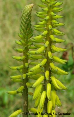 Planta acaulescente o con tallo corto, estolonífera. Hojas lanceoladas, de 30 a 60 cm, largo-acuminadas, espinoso-dentadas. Inflorescencia en escapo de hasta 1.2 m con brácteas lanceoladas o aovadas, agudas; flores amarillas de 2.5 cm de longitud en racimos densos de 10 a 30 cm. Cápsulas (fruto) dehiscentes, con semillas negras.
