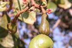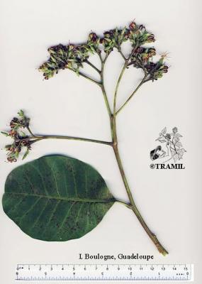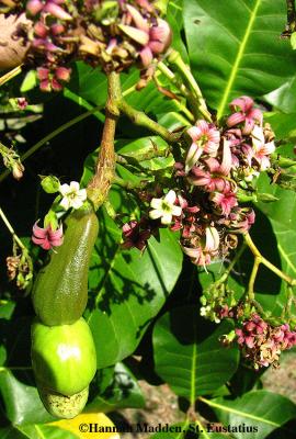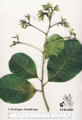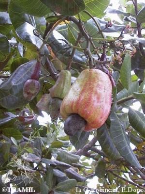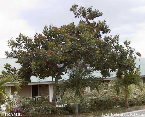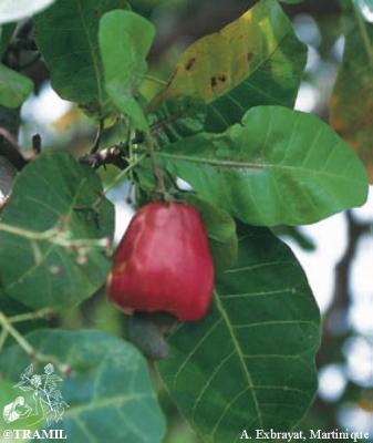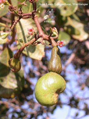 Árbol de hasta 10 m de altura. Hojas pecioladas, coriáceas, oblongo-elípticas a redondeado-elípticas, redondeadas en el ápice, agudas u obtusas en la base. Flores en panículas terminales, pétalos purpúreos lineal-lanceolados. Nuez reniforme, gris, sobre un hipocarpo grande, grueso, algo esponjoso, jugoso, rojo o amarillo.