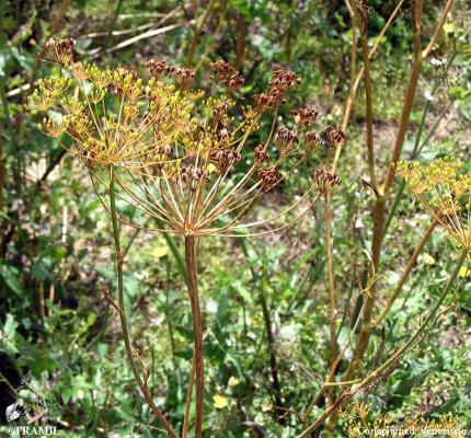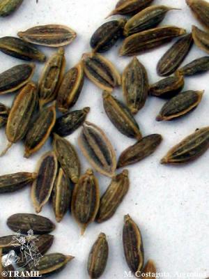 Con frecuencia esta especie es confundida con Foeniculum vulgare, el cual tiene una vaina peciolar más larga y todas las costillas del fruto son iguales.