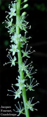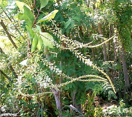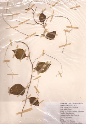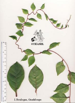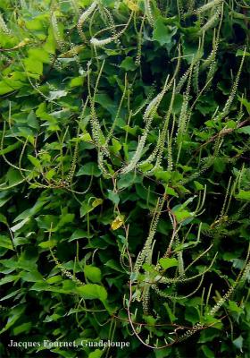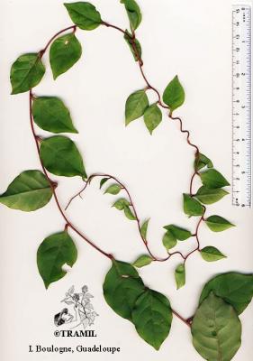 Planta trepadora con tallos delgados de hasta 15 m de largo; raíces tuberosas. Hojas alternas, aovadas a elípticas, de 2 a 8 cm de largo y 2 a 4 cm de ancho, agudas a acuminadas, gradual o abruptamente estrechas en la base. Flores diminutas aromáticas blancas en racimos laxos de 6 a 20 cm, delgados; cáliz y corola blancos, pétalos ovados de 2 a 2.5 mm. Fruto tipo nuez tricarpelar con una sola semilla protegida por el periantio.