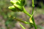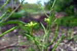 Herbácea anual de hasta 1 m. Hojas inferiores grandes, anchamente oblongas u obovadas de márgenes dentados, las superiores caulinares, simples, más estrechas, lobuladas, dentadas o enteras, cortamente pecioladas o sésiles. Flores amarillo-brillantes de 7 a 10 mm. Fruto en forma de vaina de 4 a 7 cm de largo, semillas color café oscuras de hasta 2 mm de diámetro.