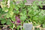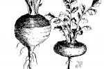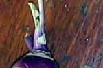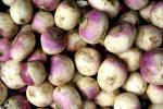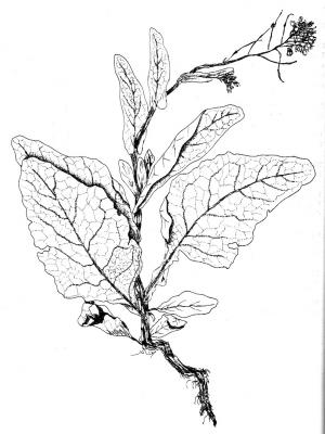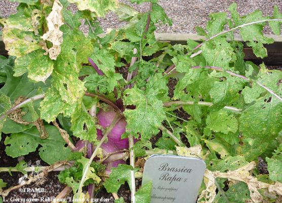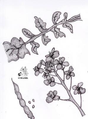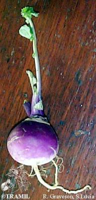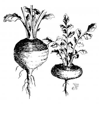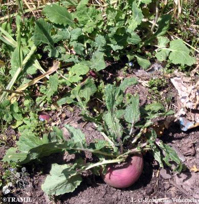 Herbácea bienal. Raíz típicamente globosa o elongada, de color exterior blanco, blanco con púrpura o amarillento. Casi sin tallo antes de florecer. Hojas de hasta 30 cm de largo, glaucas, a veces liradas. Tallo de inflorescencia con hojas lobuladas. Flores con 4 pétalos amarillos, dispuestas en racimos corimbosos.