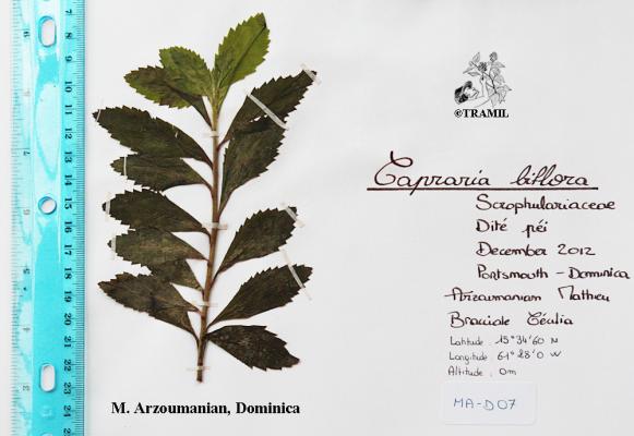 Recherche d’activité toxique aiguë de la décoction de la feuille lyophilisée de Capraria biflora L. Travail TRAMIL. Laboratorio Central de Farmacología, Facultad de Ciencias Médicas “Dr. Salvador Allende”, La Habana, Cuba.