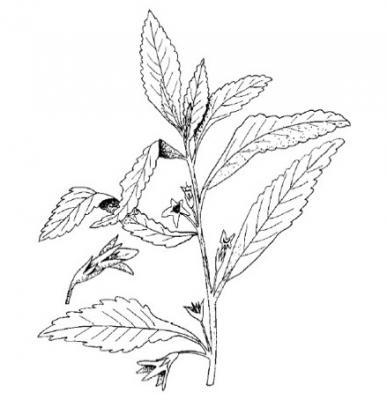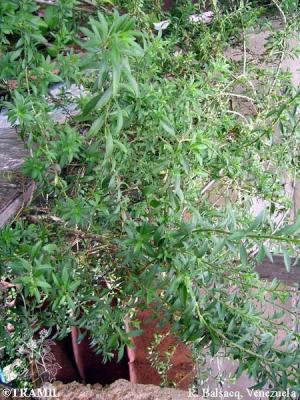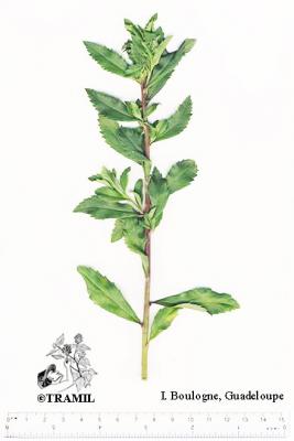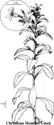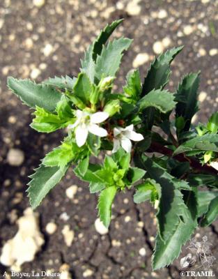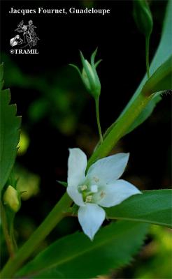 Herbácea o sufrútice de hasta 1 m de altura. Hojas oblanceoladas u oblongas, de 1 a 9 cm, agudas, aserradas en la mitad superior; sésiles o corto pecioladas. Flores solitarias, axilares o en pares, sépalos linear-lanceolados de 4 a 6 mm, corola de 1 cm, blanca. Cápsula oval a oval-ovoidea, de 5 a 6 mm.