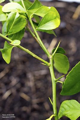 Arbolito con ramas irregulares, armado con espinas gruesas, rígidas y filosas. Hojas de 5 a 7.5 cm de largo, elíptico-ovales, crenadas; pecíolos alados. Flores blancas de 2 cm de largo. Frutos redondos de 3 a 6 cm, verdoso amarillentos, con abundante pulpa ácida. Semillas pequeñas blancas, ovales.