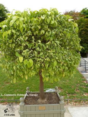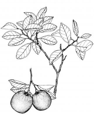 Árbol de tamaño mediano de hasta 6 m, copa redonda; ramas con espinas delgadas, flexibles, ocasionalmente ausentes. Hojas ampliamente elípticas de 6 a 11 cm de largo con el ápice obtuso o agudo, base cuneada a redondeada. Flores solitarias o en racimos cortos, blancas, aromáticas. Fruto globoso u oval, con 10 a 13 segmentos, pulpa amarillenta, dulce.