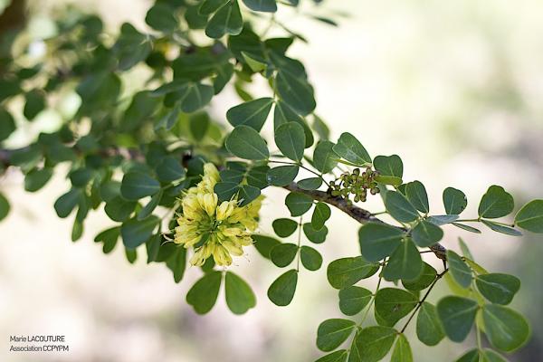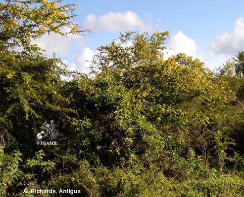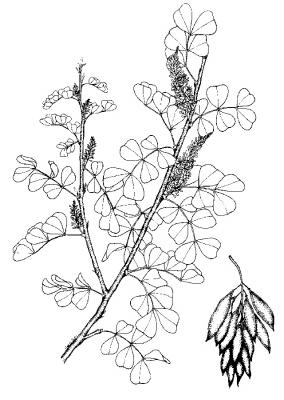 Árbol de hasta 15 m, frecuentemente más pequeño; armado con espinas. Hojas alternas con 2 a 4 pares de folíolos cuneado-aovados, de 1 a 3 cm, redondeados a emarginados. Racimos con muchas flores, estrechos, de hasta 12 cm; flores fragantes, pétalos amarillos, aovados, de 5 a 6 mm. Legumbre plana lanceolado-oblonga, de 2 a 5 cm.