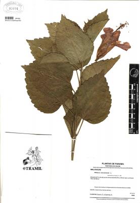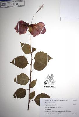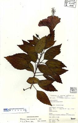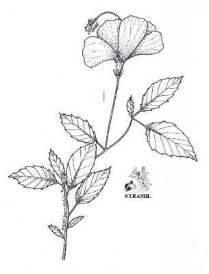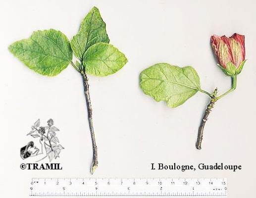 Arbusto de 1 a 4 m de alto. Hojas alternas, aovadas, agudas a acuminadas en el ápice, aserradas. Bractéolas 5 a 7, lineales. Cáliz campanulado; corola blanca, roja purpúrea, amarilla o anaranjada, de tamaño variable, muy vistosa; tubo estaminal más largo que los pétalos. Cápsula oblonga de casi 3 cm de diámetro.