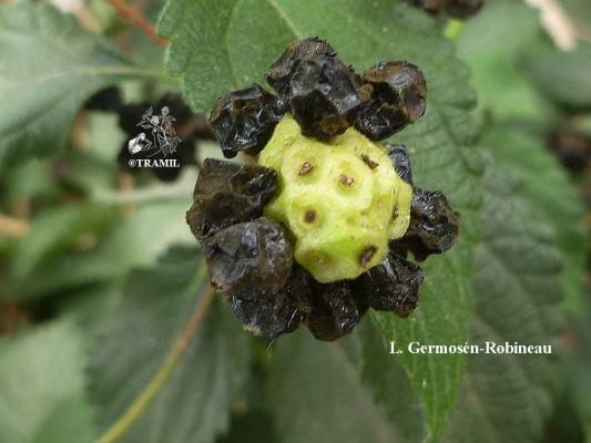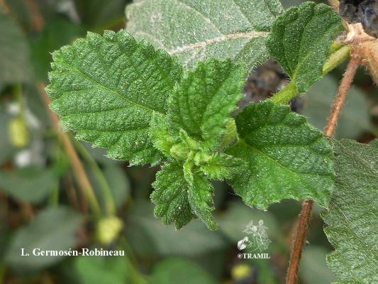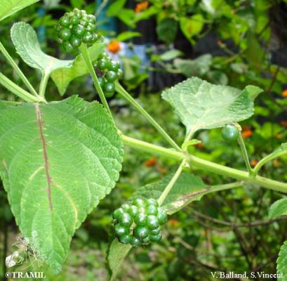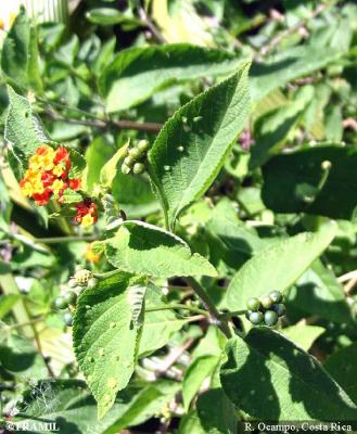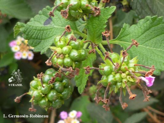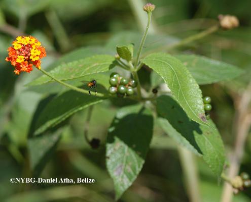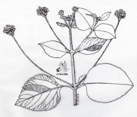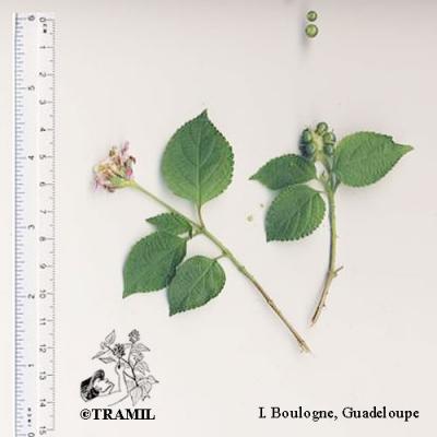 Arbusto de hasta 2 m de alto, con o sin espinas recurvadas, tallos híspidos, cuadrados en sección. Hojas opuestas o ternadas, ovadas a oblongo-ovadas, lámina rugosa, márgenes crenados o aserrados. Inflorescencia con brácteas inferiores subuladas; corola de color variable desde rojo a anaranjado o amarillo y lila o morado claro. Bayas morado oscuras.