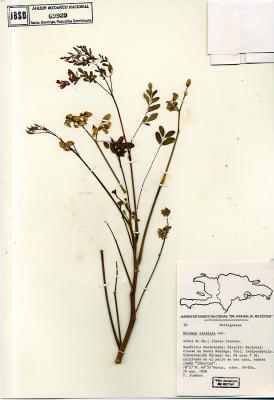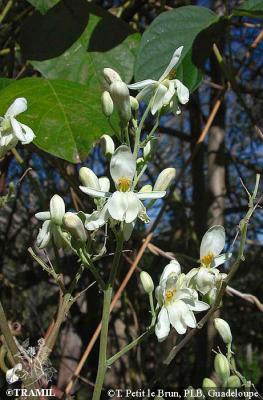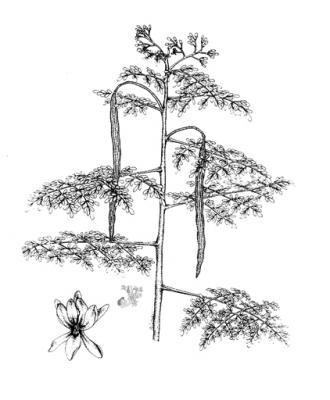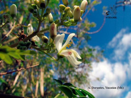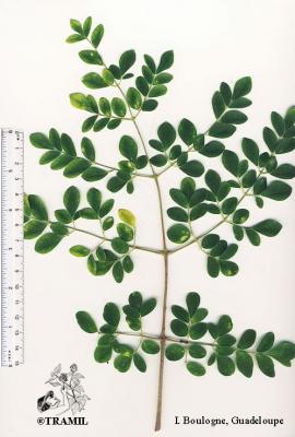 Árbol 5 a 10 m, el tronco generalmente delgado e irregular. Hojas alternas, pinnadas, oblongas, pecíolo corto; folíolos opuestos, numerosos, corto peciolados, de 1 a 2 cm, obtusos, enteros, pálidos. Flores numerosas, blancas, aromáticas, en panículas axilares; pétalos ligeramente más largos que los sépalos. Cápsula linear, triquetra, pendiente, de hasta 45 cm de largo, dehiscente, de color amarillo-cenizo; semillas generalmente aladas, oleaginosas.