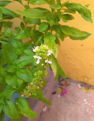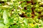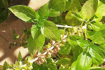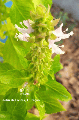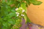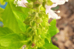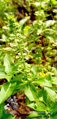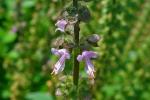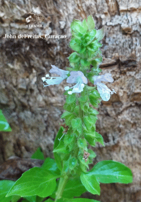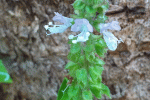 Herbácea semileñosa de hasta 50 cm de alto, aromática. Tallo solitario, muy ramificado, piloso. Hojas de hasta 2.5 cm, aovadas a elípticas, esparcidamente pubescentes, punteado-glandulares, base atenuada, márgenes aserrados distalmente. Flores blancas o rosado-púrpuras, vistosas, con brácteas subyacentes persistentes, de hasta 5 mm, escasamente puberulentas; corola 4 a 6 mm, tubo 4 a 5 mm. Fruto, nuececilla de 1.5 a 2 mm, pardo oscuro.