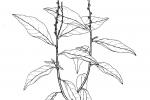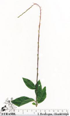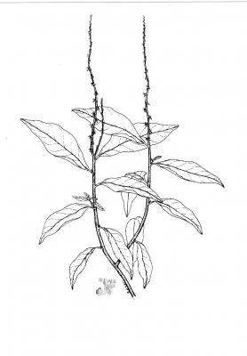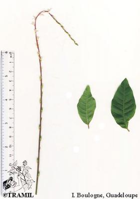 Herbácea o sufruticosa perenne de hasta 1 m de alto, de olor fétido. Hojas alternas, oblongas a elípticas, agudas a acuminadas en el ápice, generalmente glabras. Espigas de hasta 40 cm, pubérulas; flores perfectas, subsésiles, apétalas. Aquenio de alrededor de 8 mm de largo, cuneado, estriado, con seis cerdas terminales reflexas; semilla solitaria, linear.