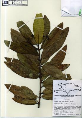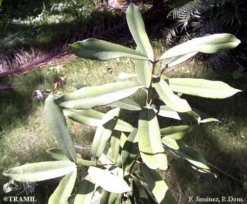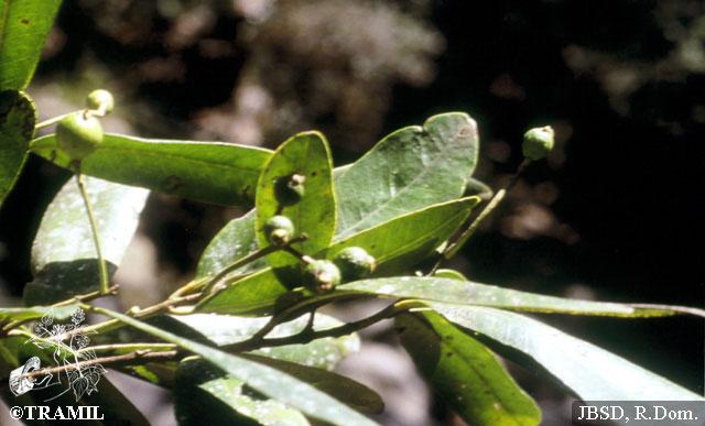 Árbol de hasta 20 m, muy aromático. Hojas elíptico-oblongas a oblongas de 6 a 12 cm, obtusas en el ápice, redondeadas a agudas en la base, coriáceas. Inflorescencias cimosas, 3 flores ó 2 veces tricótomas, de hasta 9 flores. Bayas globosas, glabras, glandulosas.