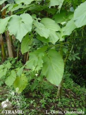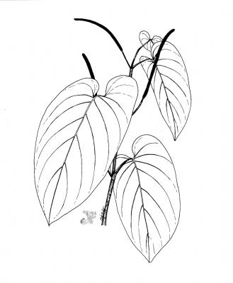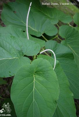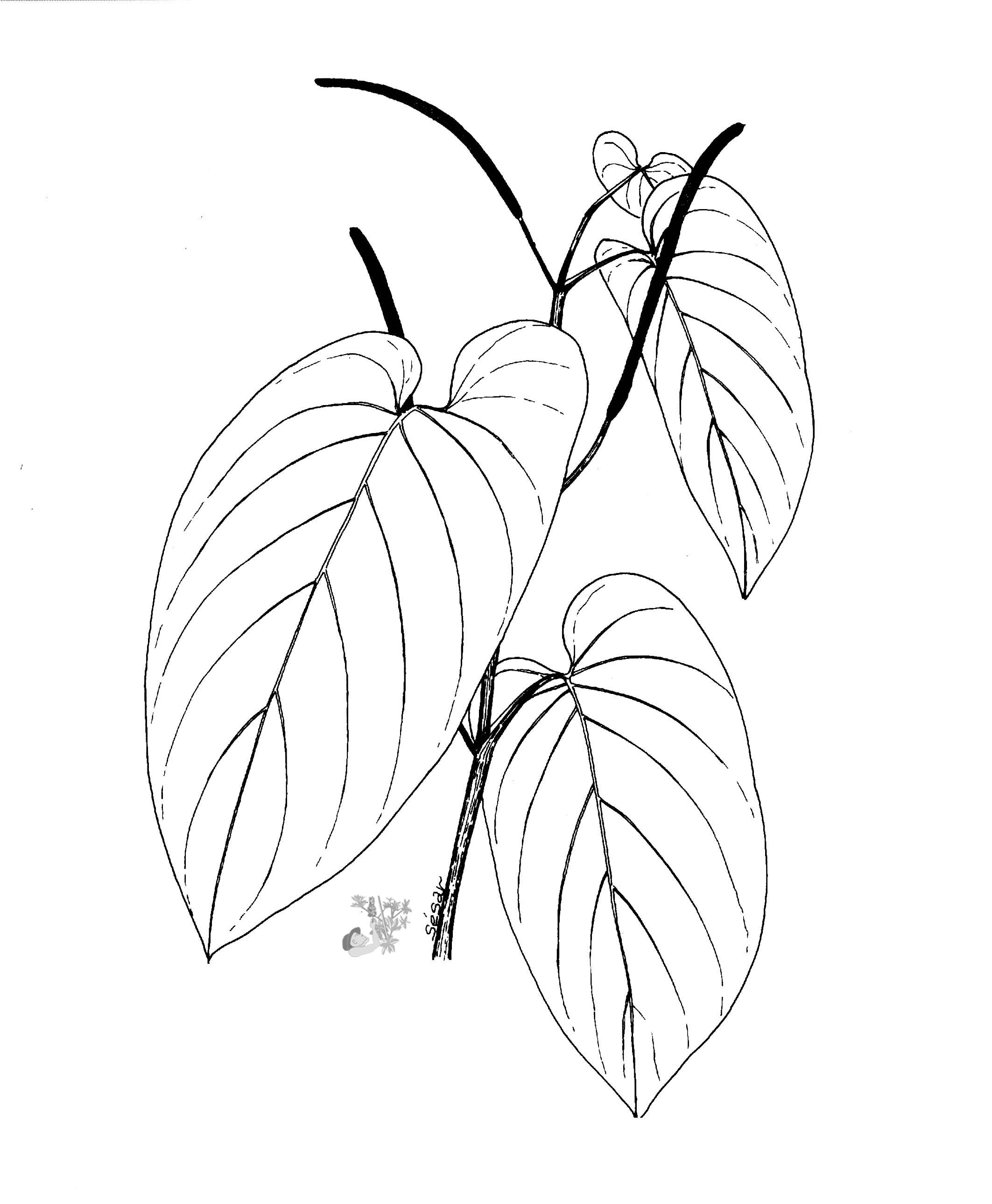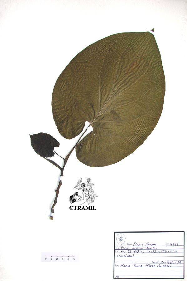 Arbusto de 2 a 3 m, aromático, de madera suave. Hojas ovadas u oblongo-ovadas de hasta 60 cm de largo, agudas a corto acuminadas en el ápice, cordadas en la base, lóbulos basales redondeados, marcadamente desiguales. Espigas de color verde pálido, de 10 a 20 cm de largo; brácteas redondeadas y densamente ciliadas. Frutos pequeños agrupados en las espigas.
