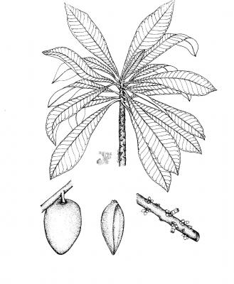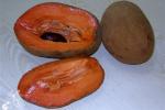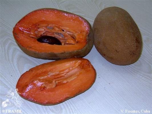 Arbol de hasta 30 m, corteza fisurada con látex blanco lechoso. Hojas oblanceoladas, ápice comúnmente agudo, base aguda o atenuada, ferruginosas, finamente reticuladas. Flores en pequeños fascículos axilares, muy perfumadas, actinomorfas. Fruto elipsoide, ovoide o subgloboso de hasta 20 cm, áspero, escamoso, café; pulpa roja; semillas 1 a 2, grandes, negras y lustrosas.