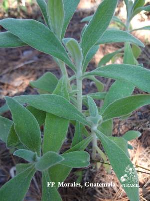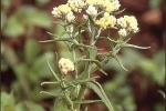 Herbácea anual o bianual de 20 a 80 cm de alto, tallos con indumento hirsuto-glanduloso. Hojas estrechamente sagitadas, linear-lanceoladas, ápice agudo o acuminado, margen generalmente revoluto, el haz verde densa o escasamente hirsuto-glanduloso, envés con indumento lanoso. Inflorescencia glomerular simple o corimbosa; corola amarilla en ocasiones con ápice café. Aquenios oblongos o estrechamente obovados, de color café.
