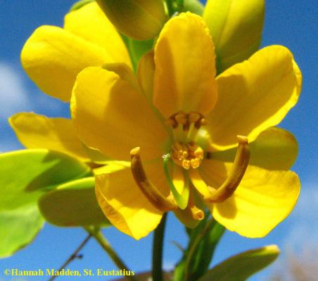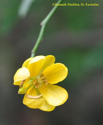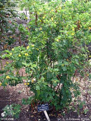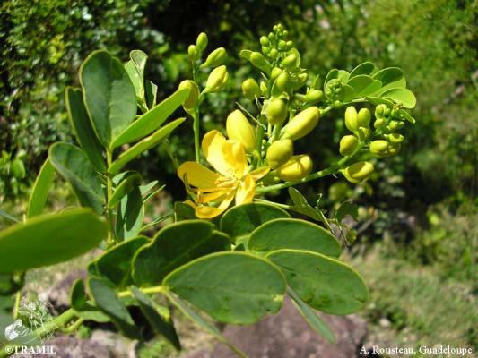Arbusto o arbolito de hasta 5 m de altura. El tallo café rojizo, glabro cuando joven y con lenticelas cuando es viejo. Estípulas submenbranosas lanceoladas a sublobadas. Hojas compuestas de 9 cm con 3 a 5 pares de foliolos, oblongos, obovados o redondeados de 1 a 4 cm. Flores amarillas agrupadas en racimos, axilares; sépalos redondeados y anchos de 1 cm; pétalos de 1.5 cm. Legumbre subcilíndrica de 8 a 15 cm con numerosas semillas ovoides o semiovoides de color marrón, brillante.