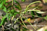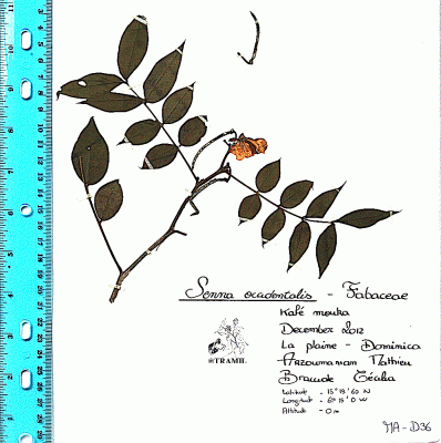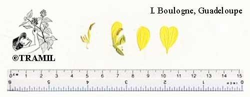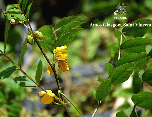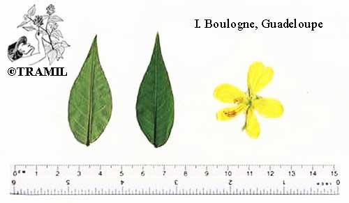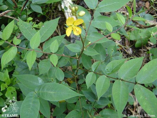 Herbácea de hasta 2 m de altura, finamente estrigulosa. Hojas alternas, pinnadas, arregladas espiralmente; folíolos en 3 a 6 pares, ovados a lanceolados, agudos a acuminados; pecíolo con glándula en la base, sésil, globosa o cónica; estípulas linear-lanceoladas a triangular, acuminadas, caducas. Racimos axilares con flores amarillas; sépalos oblongos, obtusos; pétalos ovados o elípticos. Vaina linear, obtusa, mucronata, erecta, más o menos arqueada, con numerosas semillas ovoides.