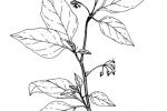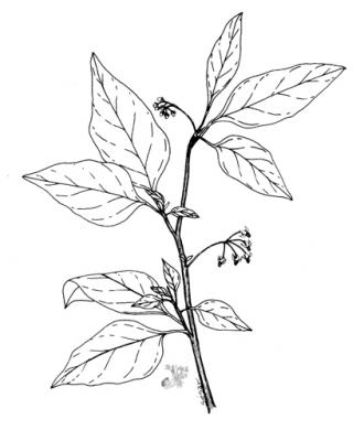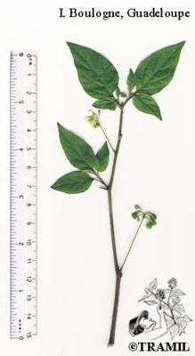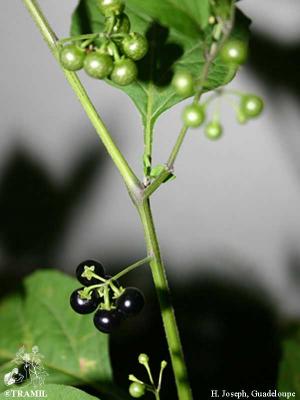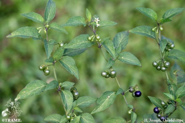 Hierba anual o perenne de vida corta, de hasta 1 m de alto. Tallos jóvenes pubescentes o glabros, pelos recurvados. Hojas solitarias o en pares desiguales, ovadas a lanceoladas; ápice agudo o acuminado, base obtusa o estrecha, subenteras o sinuado-dentadas. Racimos subumbelados, hasta con 10 flores; corola blanca, raramente azulada. El fruto es una baya globosa, glabra, negro lustrosa al madurar, con semillas pequeñas.