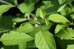 Herbácea de hasta 1 m de alto; tallos jóvenes pilosos. Hojas en pares o solitarias, de diferentes tamaños pero similares en forma, enteras o sinuado-dentadas, ovadas a ovado-lanceoladas, ápice acuminado, base atenuada. Inflorescencia internodal, racemosa o subumbelifera; corola blanca o lila, con una mancha obscura en la base de cada lóbulo. Fruto globoso de 4 a 7 mm de diámetro.