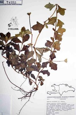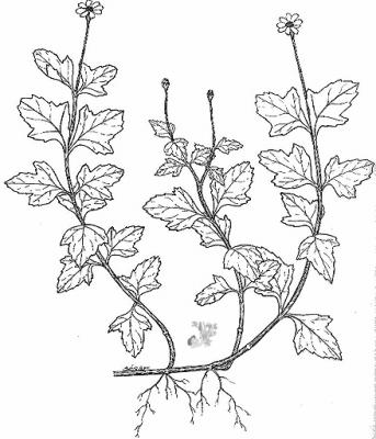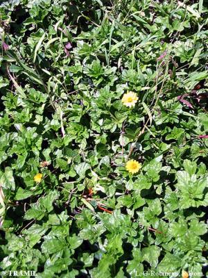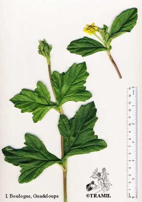 Herbácea perenne, con ramas rastreras o ascendentes, con raíces en los nudos. Hojas opuestas, sésiles, elípticas a obovadas de 2 a 12 cm, obtusas a agudas en el ápice, más o menos cuneadas en la base, serrado-dentadas, a menudo lobuladas. Cabezuelas solitarias en pedúnculos axilares o terminales; involucros campanulados; capítulos radiados, amarillos, en número de 10 aproximadamente. Aquenio obovoide, tuberculado.