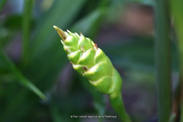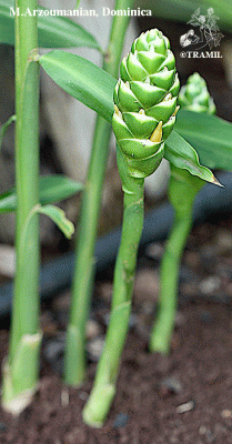 Herbácea de hasta 90 cm, con rizoma tuberoso. Hojas linear-lanceoladas, sésiles, ápice agudo, base cuneada, glabras, de hasta 20 cm de largo. Espigas florales largo-pedunculadas, elipsoides, densas, brácteas ovadas, cuspidadas, verde pálidas; cáliz crenado; corola verde-amarillenta, tubo de 2 cm. Cápsula de 3 valvas, abriendo irregularmente. Existen diferentes cultivares.