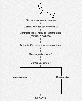 Cambios hemodinámicos y autonómicos que se producen al someter a la tabla basculante a un paciente neuralmente mediado. Modificado de Kauffmann H. Neurally mediated syncope. Neurology 1995; 45: S12-S18