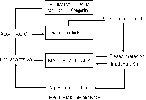 Es la aclimatación. La complejidad de los sistemas de homeostasis (termoregulación, eritropoyesis, regulación de la ventilación, etc.), permiten al individuo hacer frente a ambientes excepcionales. Este poder de aclimatación lleva un tiempo, tiene unos límites, y desaparece cuando las condiciones que lo provocan han desaparecido. Los cambios fisiológicos que deben ponerse en marcha para lograr la aclimatación tienen las características de una verdadera "enfermedad de adaptación". Cuanto más lentamente asciende el sujeto, realizando etapas de descanso a distintas alturas, más posibilidades se ofrecen a una adaptación sin problemas. Una variante podría ser la adaptación a nivel cultural. la puesta en juego voluntaria de comportamientos nuevos, adaptados y aprendidos. Es una especie de aclimatación cuyos beneficios se pierden con extremada rapidez.