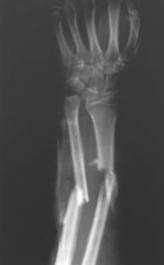 Fractura diafisaria de cúbito y radio. Proyección anteroposterior