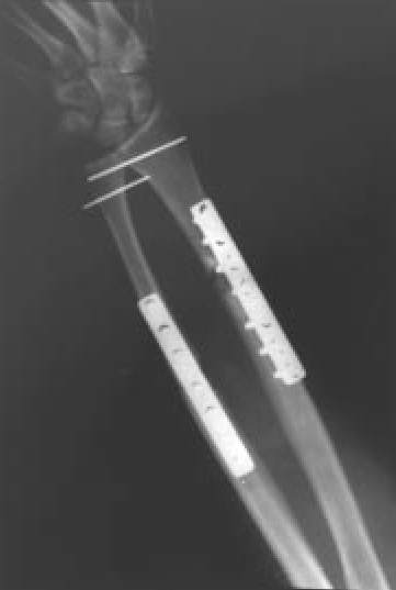 Control postoperatorio. Osteosíntesis con placas AO y agujas de Kirschner